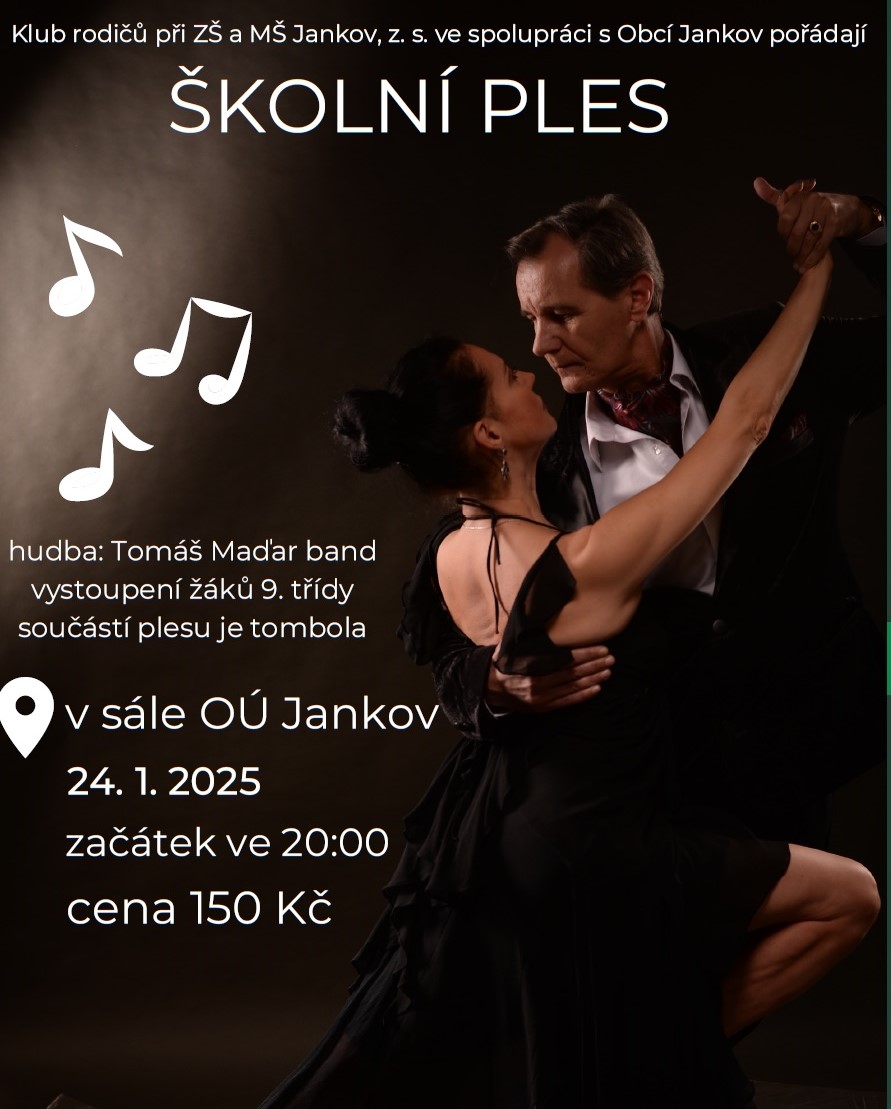 Dne 24. 1. 2020 se uskutečnil náš oblíbený PLES KLUBU RODIČŮ. Velice bychom chtěli poděkovat všem, kdo se podíleli na přípravě a i všem deváťákům za krásné vystoupení. Máme velkou radost, že se rodiče a prarodiče přišli podívat v tak hojném počtu na své děti a stejně tak velkou radost máme z těch, co si přišli jen tak zatančit a pobavit se. Jen díky těmto všem zúčastněným jsme mohli zhodnotit tento ples jako velmi úspěšný.