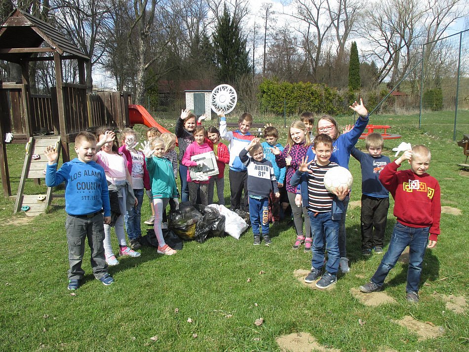 Sluníčko nás vytáhlo na školní dvůr, odhalilo, že je potřeba ho důkladně uklidit a zamést. Pustili jsme se do toho s vervou. Nadšení nás neopouštělo, tak jsme se další den vydali s rukavicemi a odpadkovými pytli na úklid okolí družiny a hřiště, kam moc rádi chodíme.