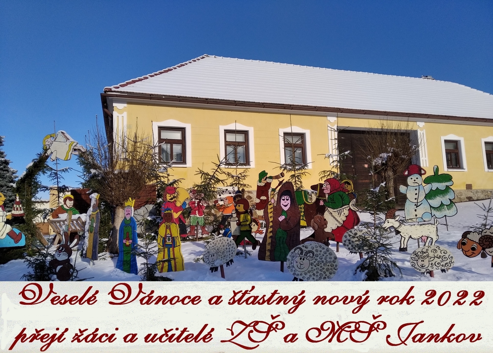 V Jankově si můžete opět prohlédnout krásný betlém, který již několik let vyrábějí děti a paní vychovatelky ze školní družiny pod vedením Jany Kolářové. Každoročně je postaven na začátku adventu a zdobí jankovské náměstí až do Tří králů. Momentálně jej krásně doplňuje čerstvě napadaný sníh. Mezi jednotlivými figurami najdete i dvě, ve kterých se můžete vyfotit.
