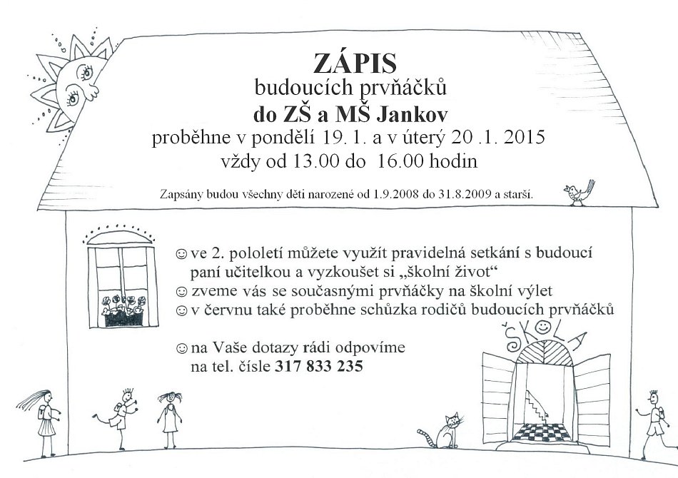 Letní prázdniny skončily, pomalu nastupuje podzim a k němu neodmyslitelně patří začátek školního vyučování. Také v Jankově se 1. září náměstí plnilo žáky, kteří svým kamarádům živě sdělovali zážitky z uplynulého léta. Někteří z nich již sebevědomě vešli do sálu obecního úřadu, kde se konalo slavnostní zahájení nového školního roku. Jiní se bázlivě dívali na své rodiče. Jako by věděli, že už pro ně skončilo období bezstarostného dětství a že je čeká spousta školních povinností.