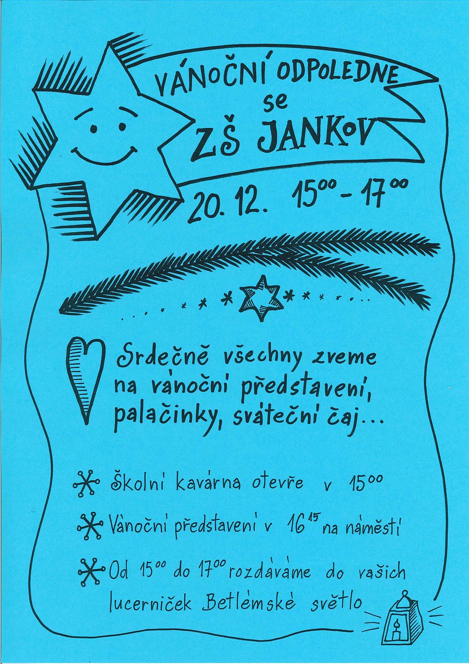 Letos se tato akce uskutečnila v pátek 30. listopadu. V jednotlivých třídách si návštěvníci mohli zakoupit adventní věnce, vánoční ozdoby a nejrůznější dekorace, které vyrobili žáci během školních dílen. V prodeji byl také náš nový školní kalendář. Atmosféru adventu podpořily vánoční zvyky, které si každý návštěvník mohl vyzkoušet. Krájela se jablíčka, házelo se botou a nechybělo ani pouštění ořechových lodiček. Občerstvení jako vždy poskytla školní kavárna, kde na návštěvníky čekaly čerstvé palačinky i výborné domácí řezy a věnečky. V pět hodin ale nastal čas přesunout se ven ke dřevěnému betlému, protože mělo následovat slavnostní rozsvícení vánoční výzdoby v celém Jankově. Nejdříve jsme si poslechli několik písní, které zazpívali žáci druhého stupně, a pak už se celý Jankov rozzářil. Bylo to krásné odpoledne a všichni se těšíme, až se 20. prosince sejdeme v jankovské škole znovu a strávíme společný vánoční den v třídním kolektivu a odpoledne zhlédneme vánoční představení. Nikola Švestková, 7. třída