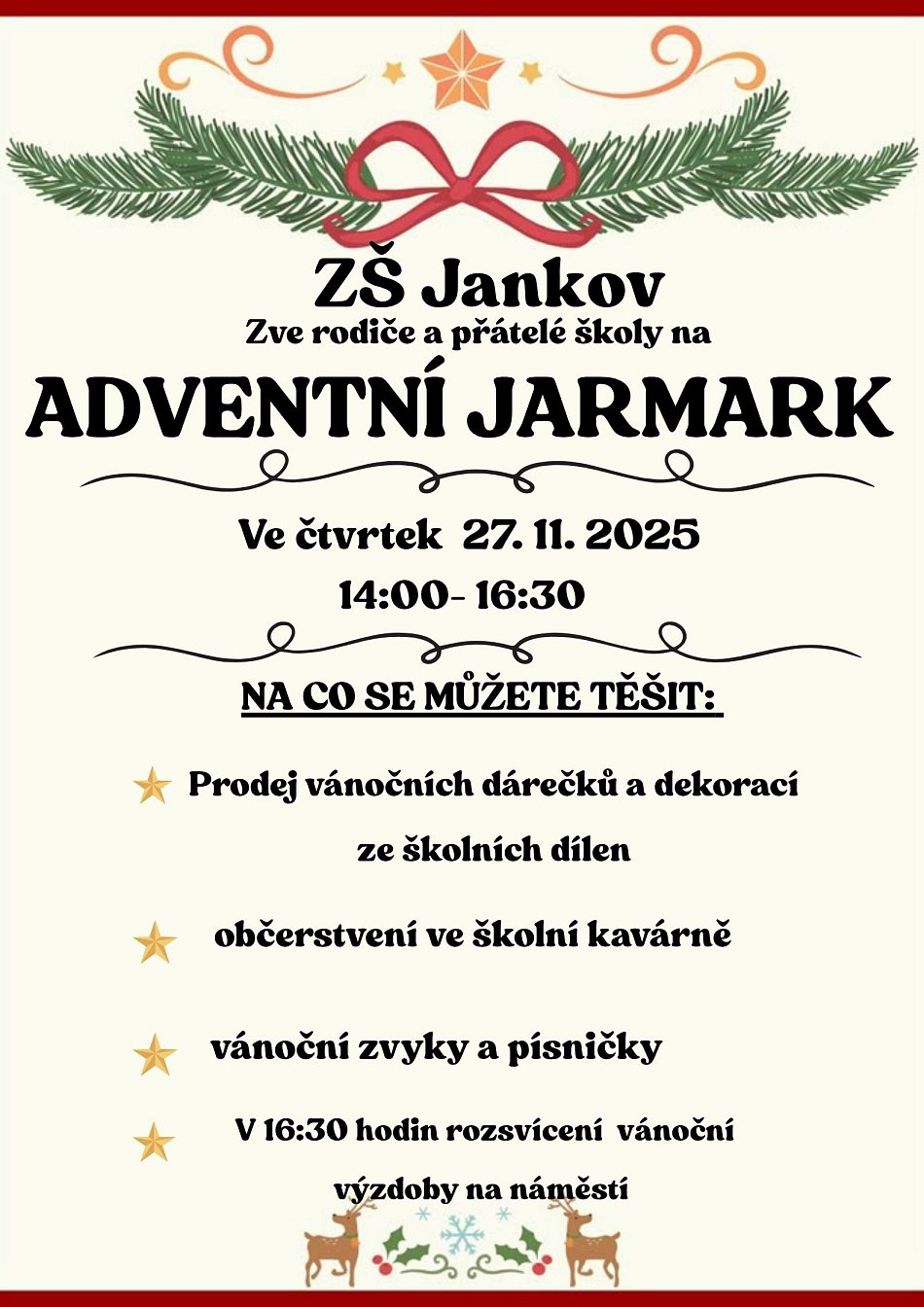 Rok utekl jako voda a dveře jankovské školy se opět otevřely návštěvníkům. Ve čtvrtek 27. listopadu se zde konal tradiční adventní jarmark. Akce odstartovala ve 14 hodin. Většina příchozích ihned zamířila do prostor, kde žáci prodávali své výrobky. Ty zhotovili při adventních dílnách, které také neodmyslitelně patří ke každoročním akcím jankovské školy. Ani letos neodešel nikdo s prázdnou. K zakoupení zde bylo množství svícnů, věnců, háčkovaných postaviček, ale i drobných vánočních dekorací. celý článek »