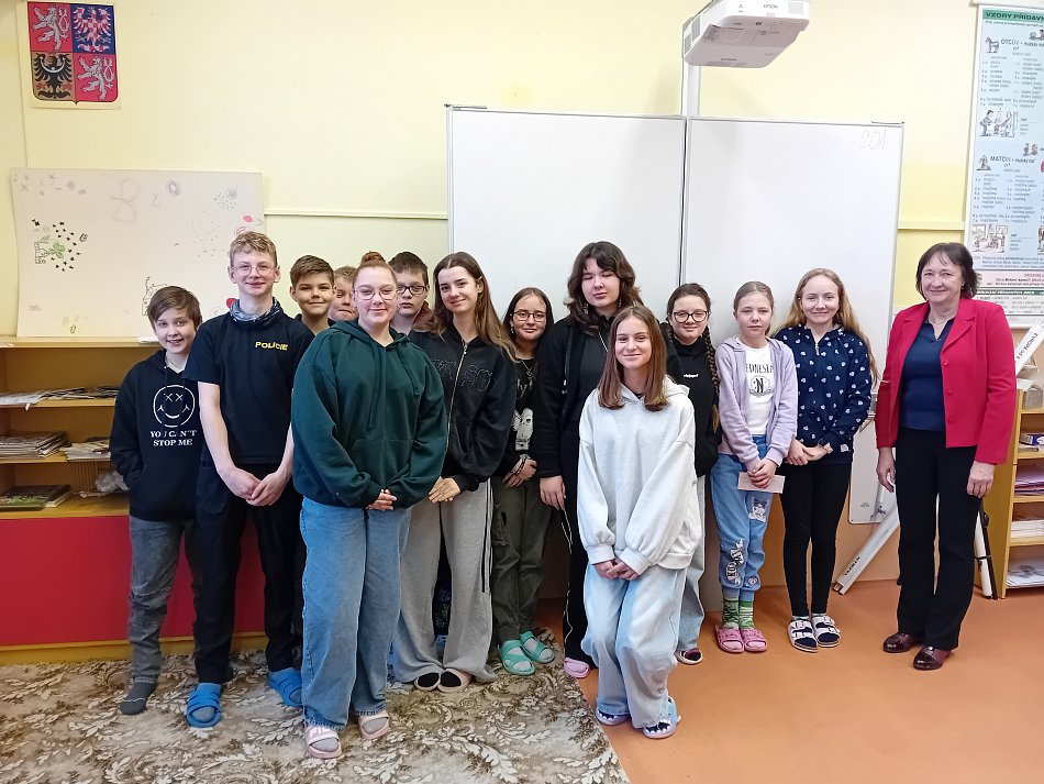 V pondělí 20. ledna naši třídu navštívila paní starostka Jitka Jonsztová a pověděla nám informace o samosprávě obce Jankov. Spousta informací jsme se již naučili v občanské výchově, ale paní starostka nás seznámila i s tím, jak to funguje v praxi. Zároveň nám představila plány do budoucna, jaké projekty se v rámci Jankova a jeho místních částí budou realizovat. Na závěr jsme otevřeli diskuzi, kde nám byly zodpovězeny naše dotazy. Paní starostce děkujeme za její čas. Všichni jsme si setkání užili a budeme se těšit na další shledání.   Kristýna Filipová, Michaela Vosátková, 7. třída