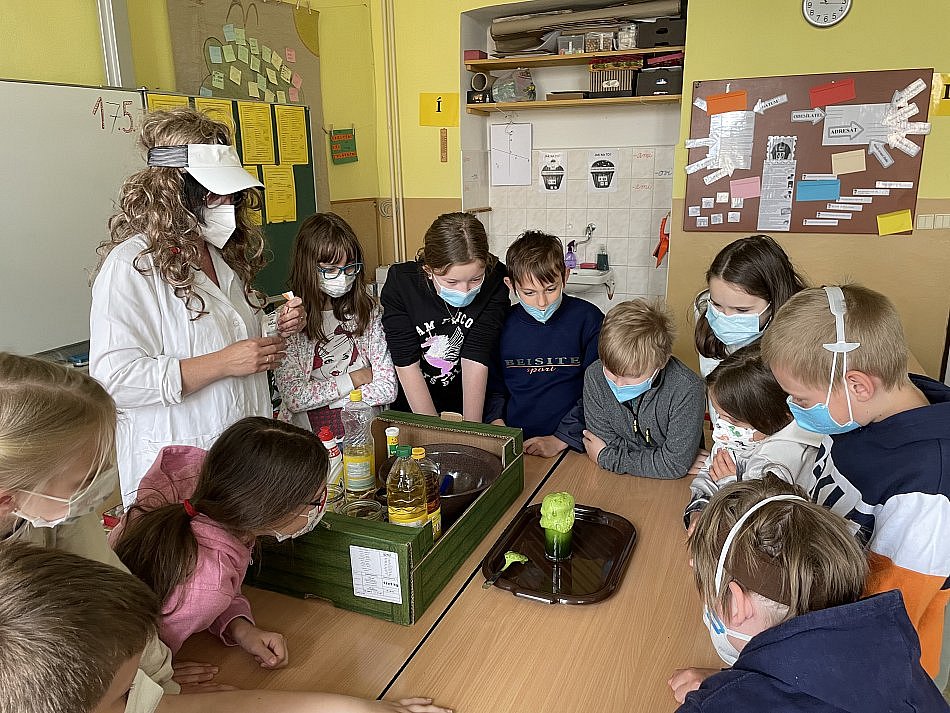 Při hodině přírodovědy čekalo na žáky čtvrté třídy malé překvapení. Paní učitelka Peroutková si pro ně připravila pár chemických pokusů. Pokusy byly pro žáky zajímavé a zpestřily jim tak hodinu. Zároveň se jednalo se o takové pokusy, které si děti mohly sami vyzkoušet a dokázaly je i pochopit. Jedním z pokusů byla například lávová lampa nebo šumivá sopka. Dětem se hodina moc líbila. Lukáš Filip